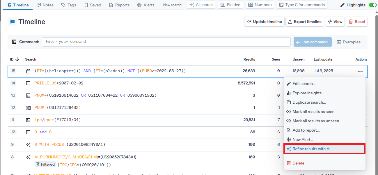 Refine results with AI".