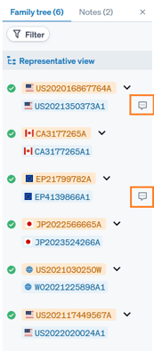 The filter function allows users to pick out family members published in specified jurisdictions. Documents from the specified jurisdictions will be moved to the top of the family tree, and documents from all other jurisdictions will be moved to a collapsed tree.