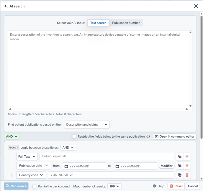 The more descriptive the input text, the better the AI results tend to be. Example techniques to add context to the input description include re-describing descriptions in a user’s own words, defining terms to aid the system in understanding the technological area, describing how things are used, and providing a best mode of invention. Providing context around the search is very important to ensure the module is looking in the correct technological area.